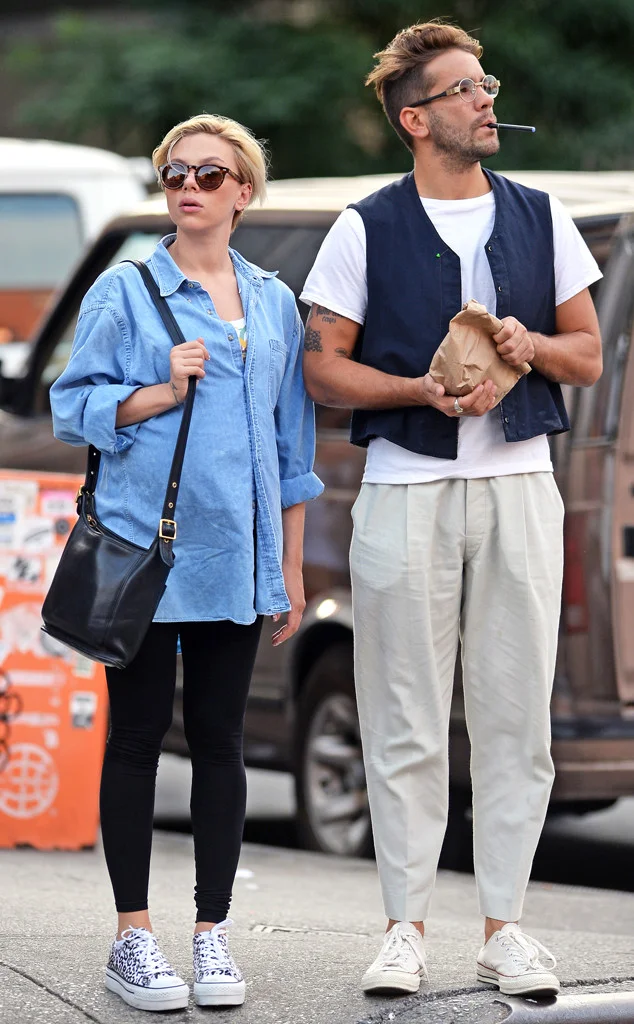 I'm not a huge fan of ScarJo, but this is pretty much the perfect outfit. What's so great about wearing leggings and your boyfriend's shitty button-down? Everything, really. First of all, she's not wearing "maternity clothes." The shoes are Robyn-esque and amazing. The sunglasses are great and so is the classic Coach bag. She's shoving ice cream in her face, probably at 10:30 in the morning, as one does. Also, I appreciate that she got a Mom haircut BEFORE becoming a mom, therefore making it cool and preempting anyone who accuses her afterwards of getting one because of the baby.